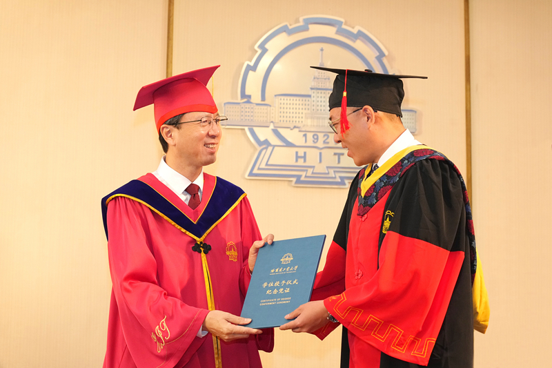 The event was attended by Chen Jie, Chair of the HIT Council, and Han Jiecai, President of HIT, who presented commemorative certificates for the degree conferral ceremony and adjusted the tassels for the doctoral graduates, taking group photos with them.