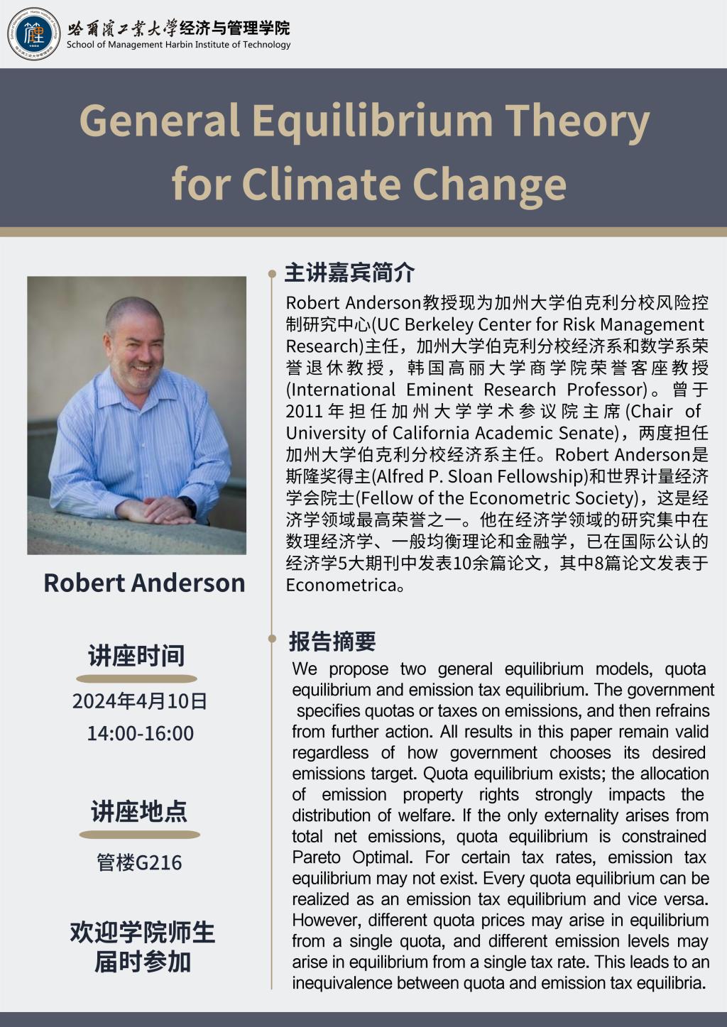 报告题目:General Equilibrium Theory for Climate Change