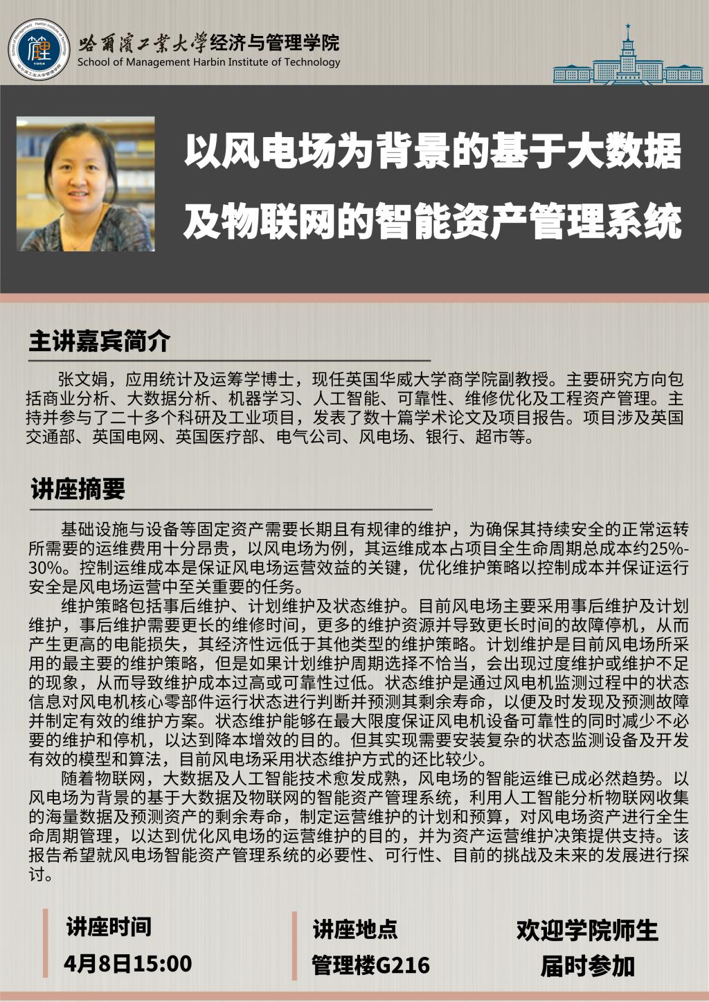 院长、哈工大计算社会科学协同创新中心副主任王健邀请,英国华威大学商吉祥坊张文娟副教授将于4月8日来院讲座,欢迎吉祥坊师生届时参加。