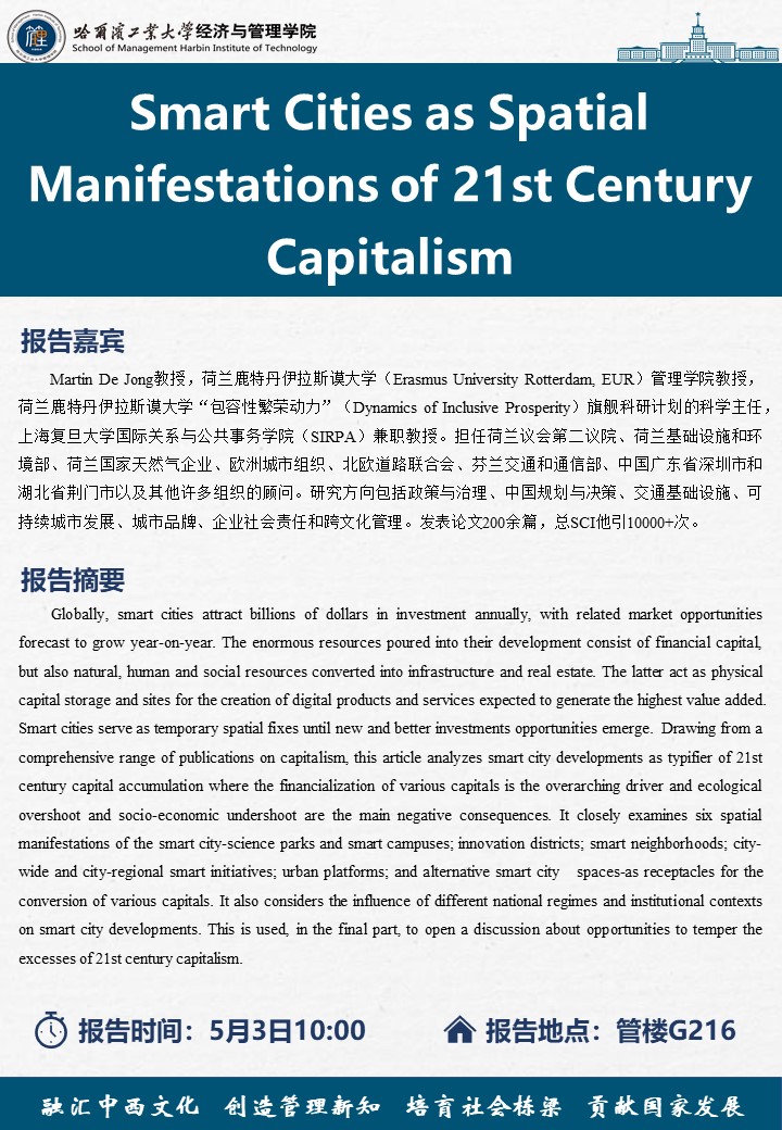 报告题目:Smart Cities as Spatial Manifestations of 21st Century Capitalism