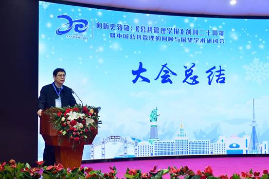 (深圳)人文与社科吉祥坊院长孙涛教授作大会总结。他指出,《公共管理学报》在引领我国公共管理研究的理论、方法和学科建设上具有前瞻性,学报与我国公共管理学科形成了同频共振和双向赋能的关系。孙涛教授祝贺《公共管理学报》创刊20周年,并感谢全国公共管理学界同仁参与此次研讨会,期待未来《公共管理学报》能进一步推进公共管理学科的交流互鉴和学术繁荣。