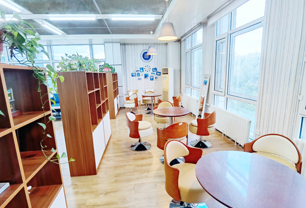 模范教职工小家”;2023年被授予“全国教科文卫体系统模范职工小家”荣誉称号。在这里,有舒适的桌椅、沙发,有不限时提供的咖啡、茶、牛奶、饼干、点心等食饮品,不仅为教师们提供了放松身心、舒缓压力的休憩空间,也为教师们搭建了沟通交流、思想碰撞的平台。在这里,教师们自由的讨论,分享生活的点滴,拉近心与心的距离,感受家一般的温暖与恬静。