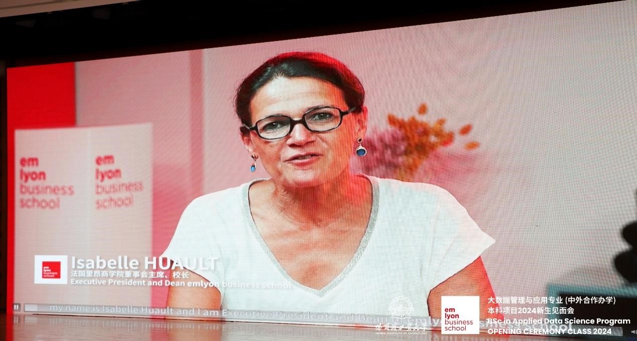-法国里昂商吉祥坊大数据管理与应用专业本科项目(中外合作办学)新生见面会在一校区活动中心201会议室举行,法国里昂商吉祥坊校长伊莎贝拉·雨欧通过视频致辞,法国里昂商吉祥坊副校长王华、吉祥坊