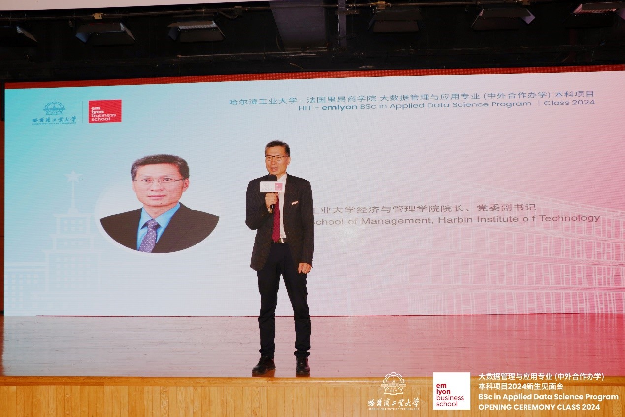 对外合作办公室主任高非易,法国里昂商吉祥坊亚洲本硕项目副主任、亚洲校区国际合作主任尼古拉·兹乌拉克先后致辞。首批大数据管理与应用专业本科教育项目学生杨阳作为学生代表发言,分享了自己入学以来的成长与蜕变。