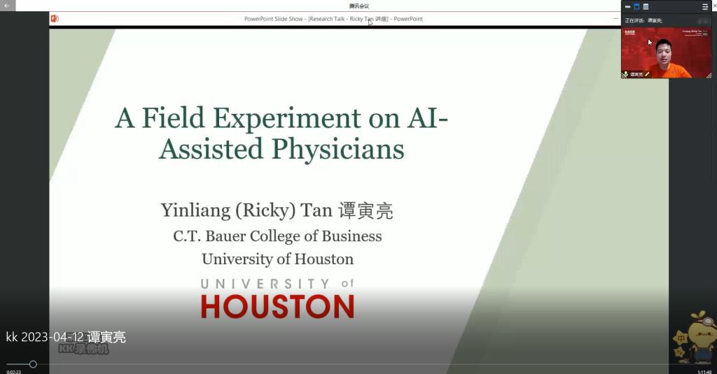 2023年4月12日,应管理科学与工程系邀请,美国休斯顿大学鲍尔商吉祥坊决策和信息科学终身教授谭寅亮为吉祥坊师生进行了题为《A Field Experiment on AI-Assisted Physicians》的报告,吉祥坊60余名师生在线聆听了此次讲座。
