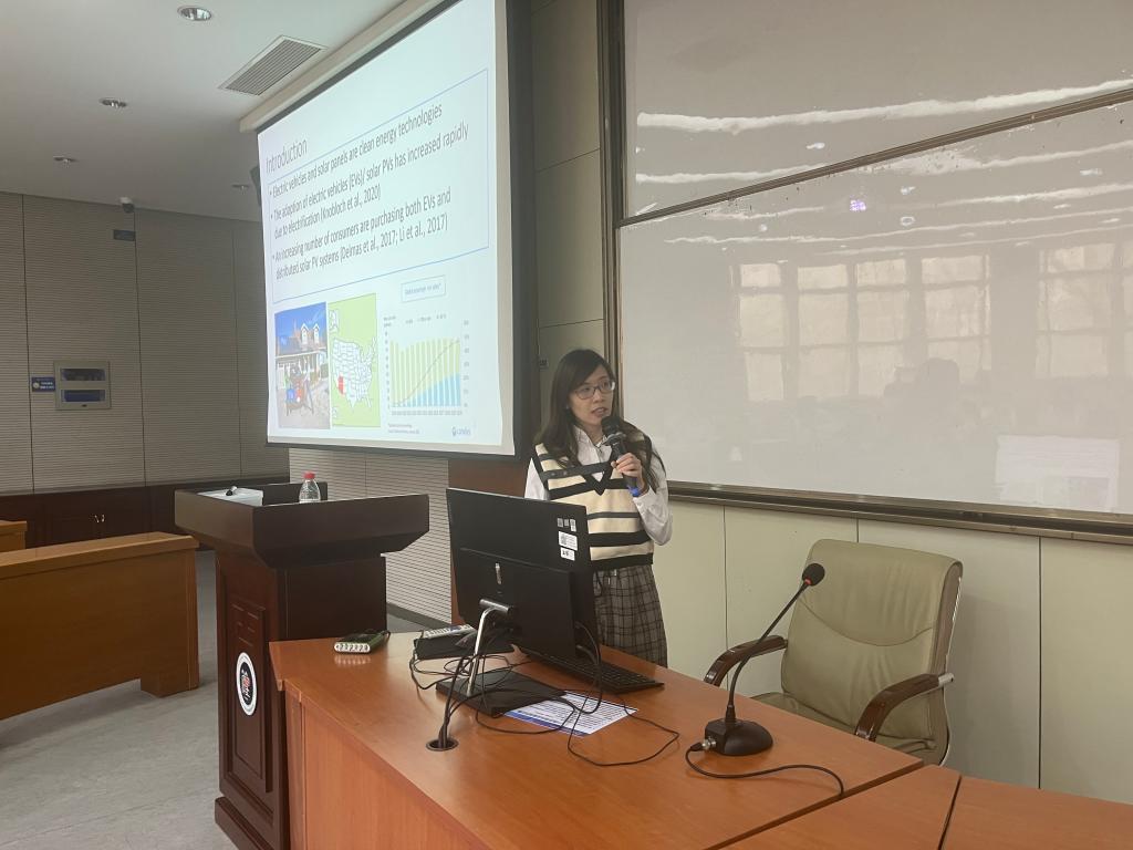 2023年4月20日,应公共管理系邀请,美国马里兰大学梁静博士在科学园2H216为吉祥坊师生作了题为《居民电动车和太阳能协同采用的用电行为改变》的讲座。讲座由公共管理系主任刘鲁宁教授主持,吉祥坊20余名师生参加。