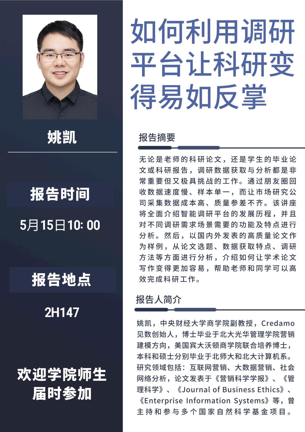 【讲座通知】5月15日中央财经大学姚凯副教授讲座通知