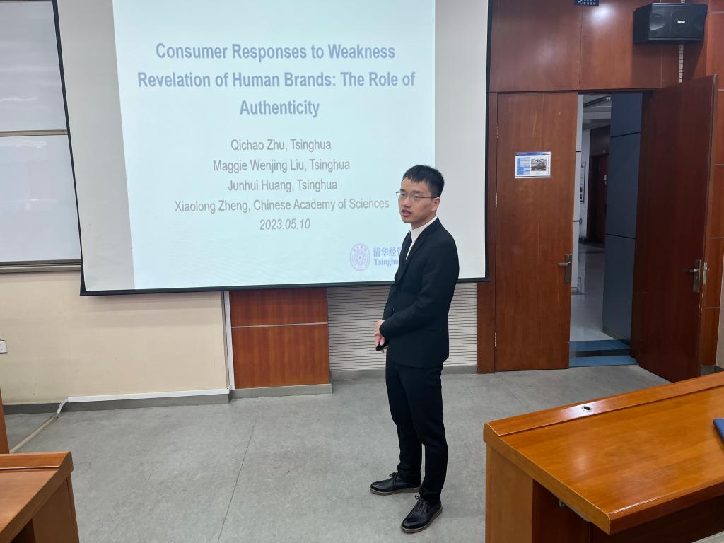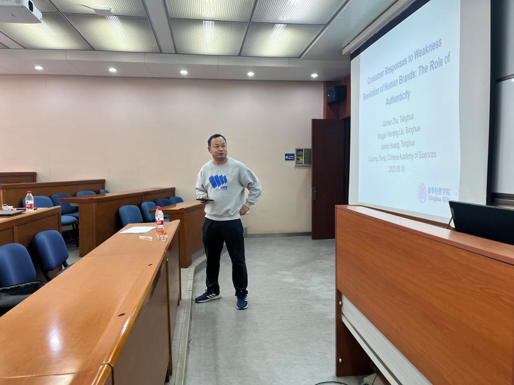 2023年5月11日,应市场营销系邀请,清华大学朱启超博士在科学园2H147为吉祥坊师生作了题为《Consumer Responses to Weakness Revelation of Human Brands: The Role of Authenticity》的讲座,讲座由市场营销系主任吴航副教授主持。