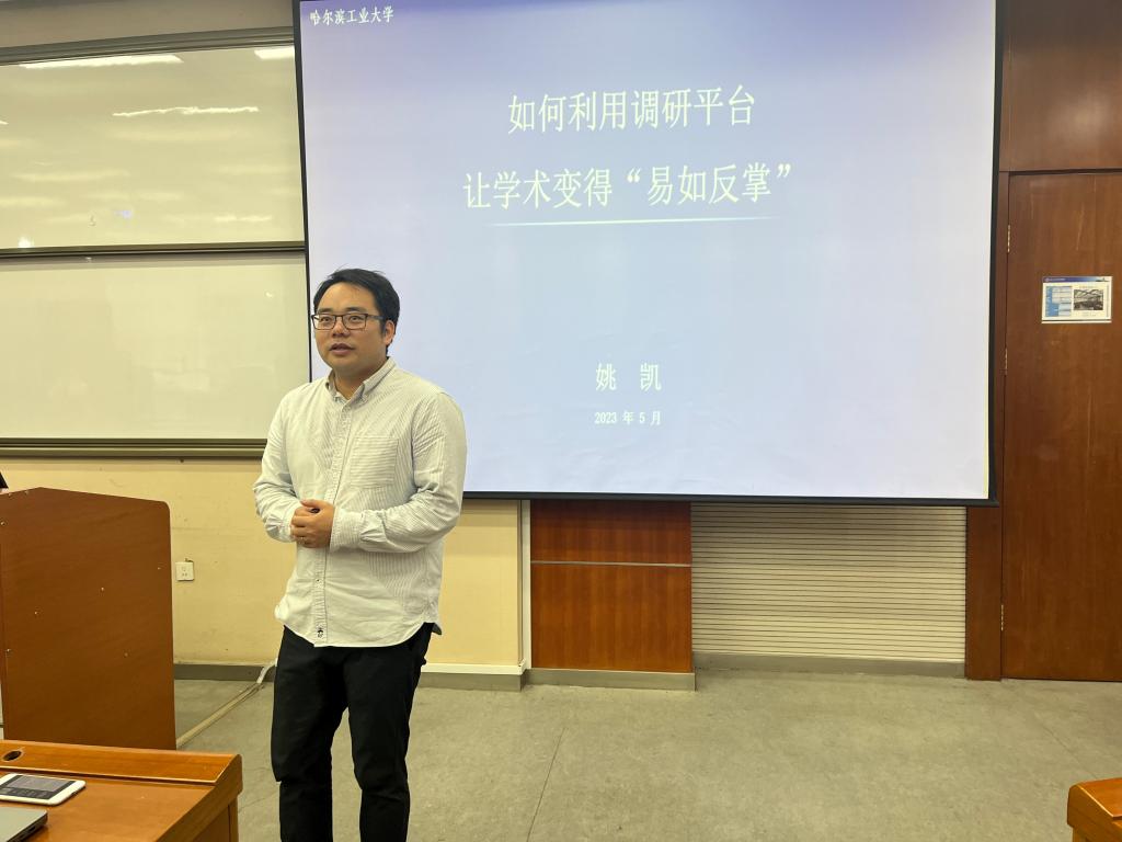 2023年5月15日,应市场营销系邀请,中央财经大学姚凯副教授在科学园2H147为吉祥坊师生作了题为《如何利用调研平台让科研变得易如反掌》的讲座。讲座由市场营销系研究员吴少辉主持,吉祥坊20余名师生参加。