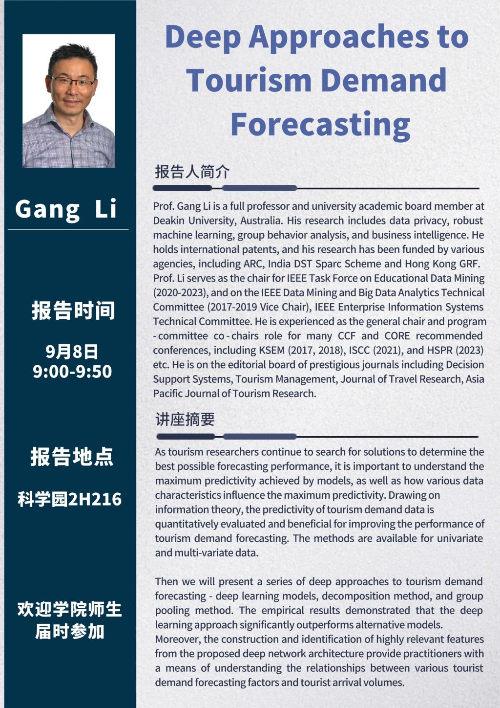 讲座题目:Deep Approaches to Tourism Demand Forecasting
