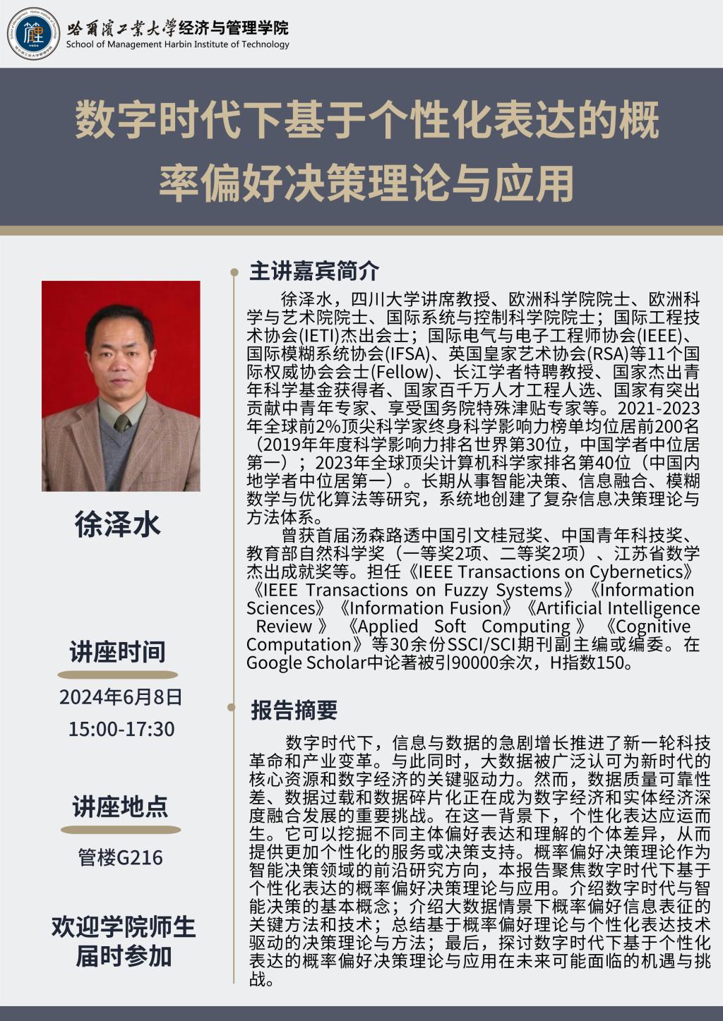 报告题目:数字时代下基于个性化表达的概率偏好决策理论与应用