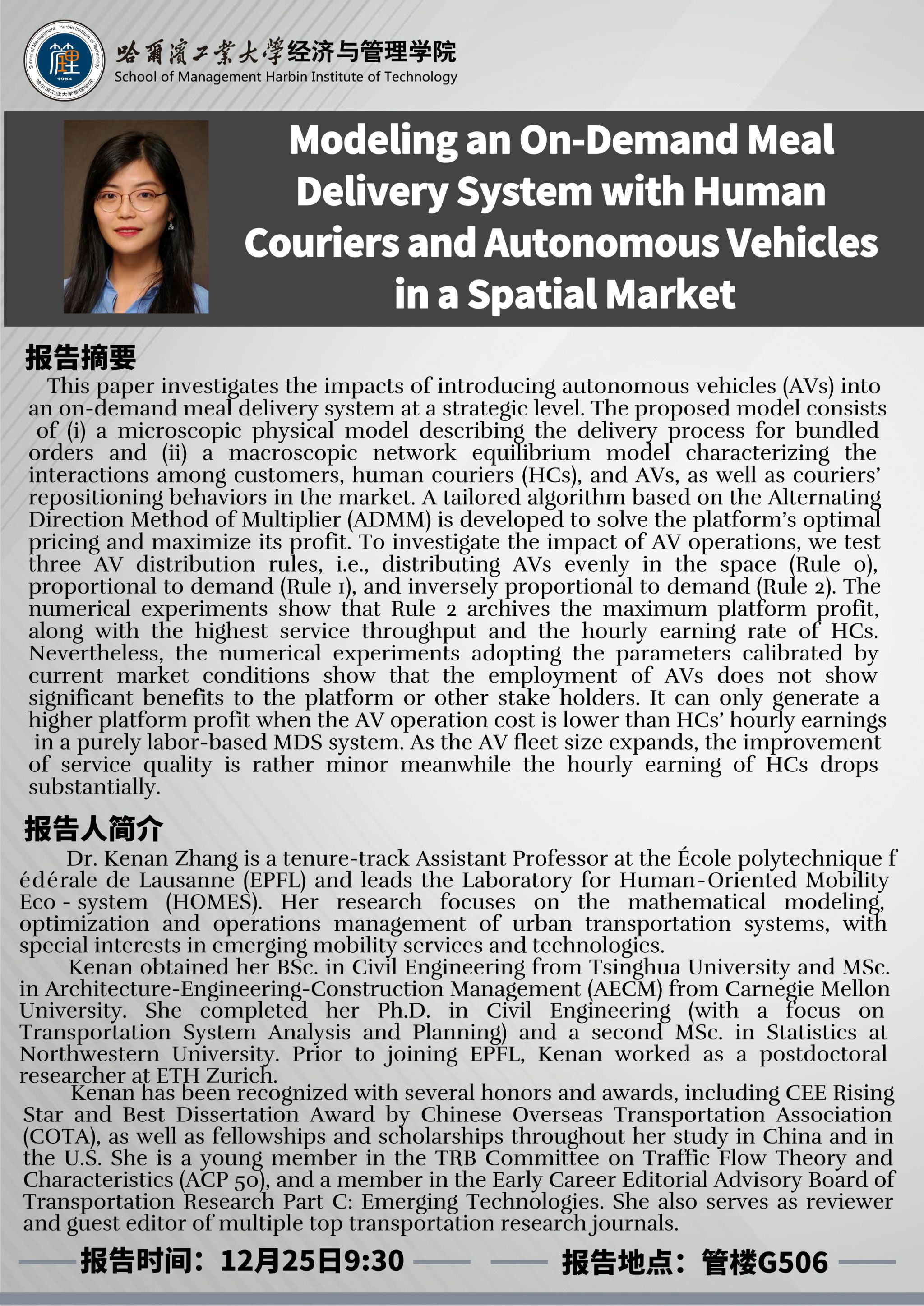 【讲座通知】1225日洛桑联邦理工吉祥坊助理教授Kenan Zhang讲座通知