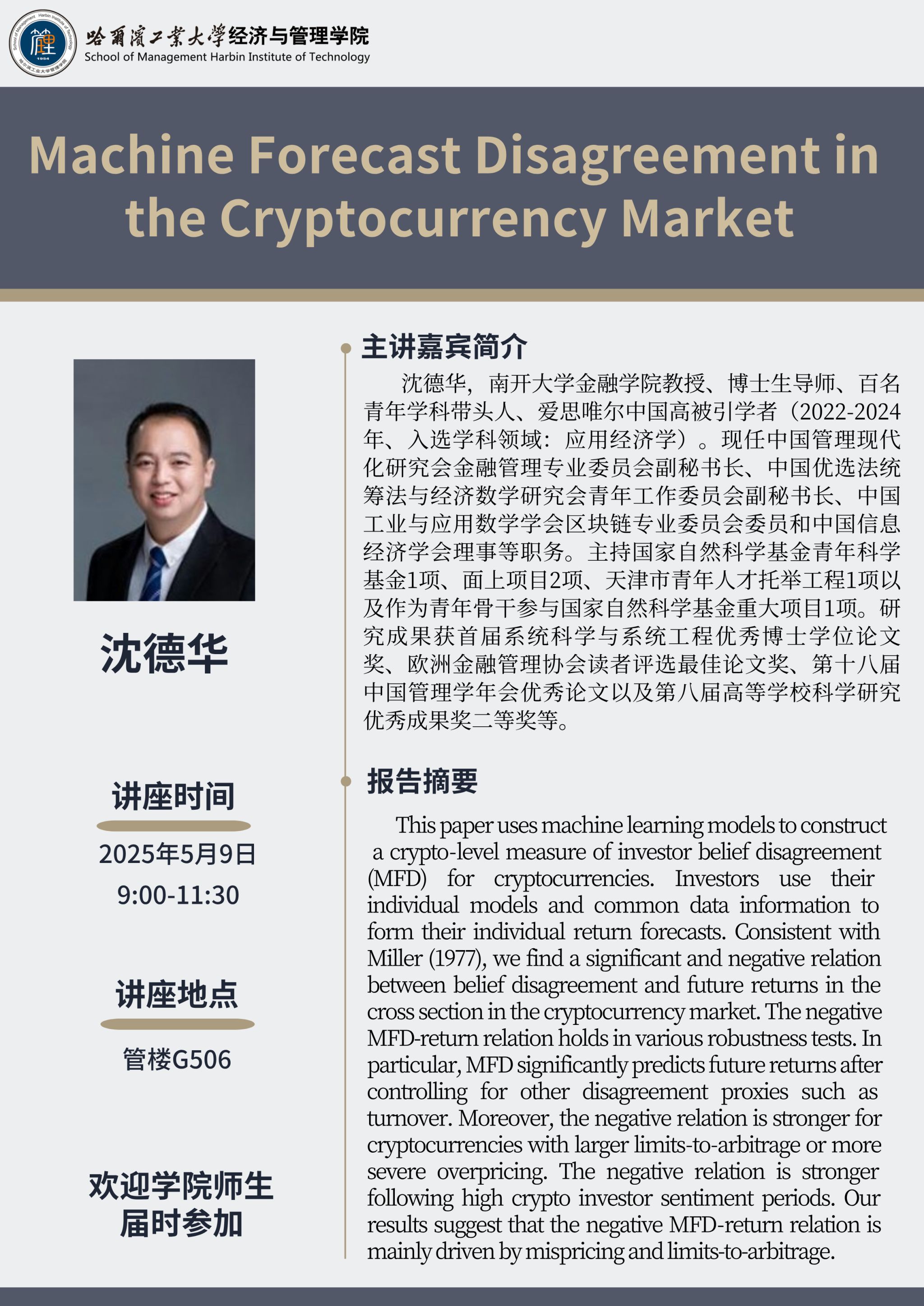讲座主题:Machine Forecast Disagreement in the Cryptocurrency Market