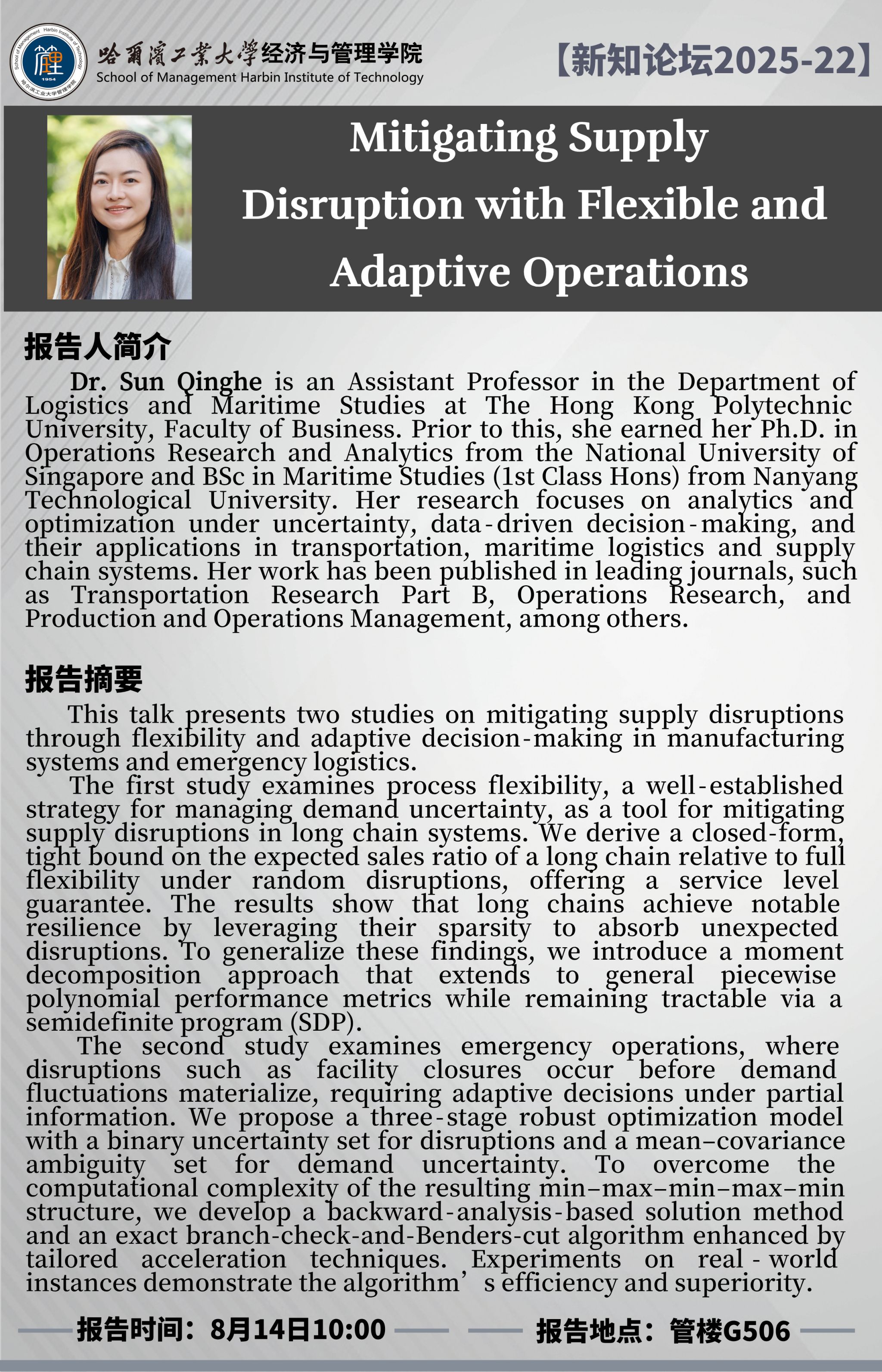 讲座主题:Mitigating Supply Disruption with Flexible and Adaptive Operations