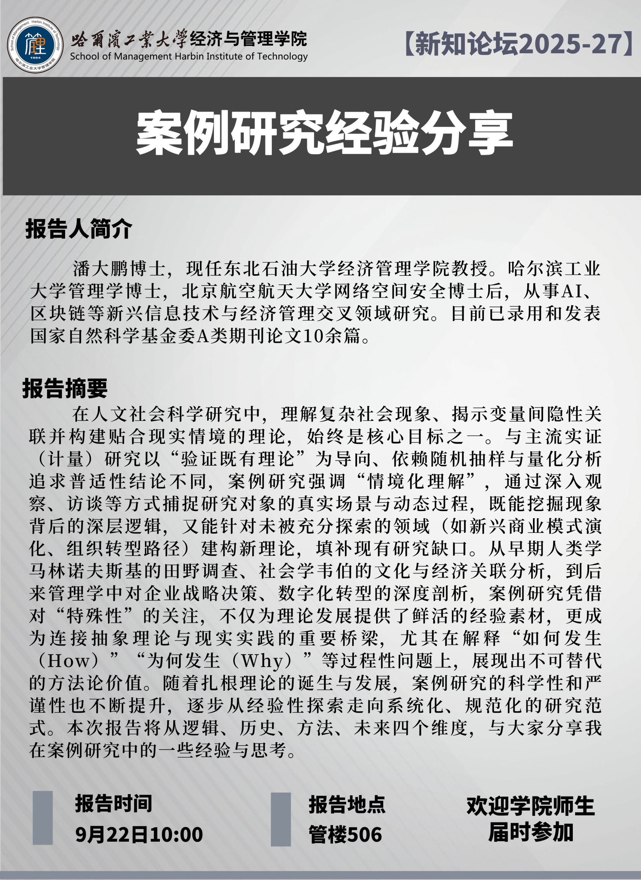 在人文社会科学研究中,理解复杂社会现象、揭示变量间隐性关联并构建贴合现实情境的理论,始终是核心目标之一。与主流实证(计量)研究以“验证既有理论”为导向、依赖随机抽样与量化分析追求普适性结论不同,案例研究强调“情境化理解”,通过深入观察、访谈等方式捕捉研究对象的真实场景与动态过程,既能挖掘现象背后的深层逻辑,又能针对未被充分探索的领域(如新兴商业模式演化、组织转型路径)建构新理论,填补现有研究缺口。从早期人类学马林诺夫斯基的田野调查、社会学韦伯的文化与经济关联分析,到后来管理学中对企业战略决策、数字化转型的深度剖析,案例研究凭借对“特殊性”的关注,不仅为理论发展提供了鲜活的经验素材,更成为连接抽象理论与现实实践的重要桥梁,尤其在解释“如何发生(How)”“为何发生(Why)”等过程性问题上,展现出不可替代的方法论价值。随着扎根理论的诞生与发展,案例研究的科学性和严谨性也不断提升,逐步从经验性探索走向系统化、规范化的研究范式。本次报告将从逻辑、历史、方法、未来四个维度,与大家分享我在案例研究中的一些经验与思考。