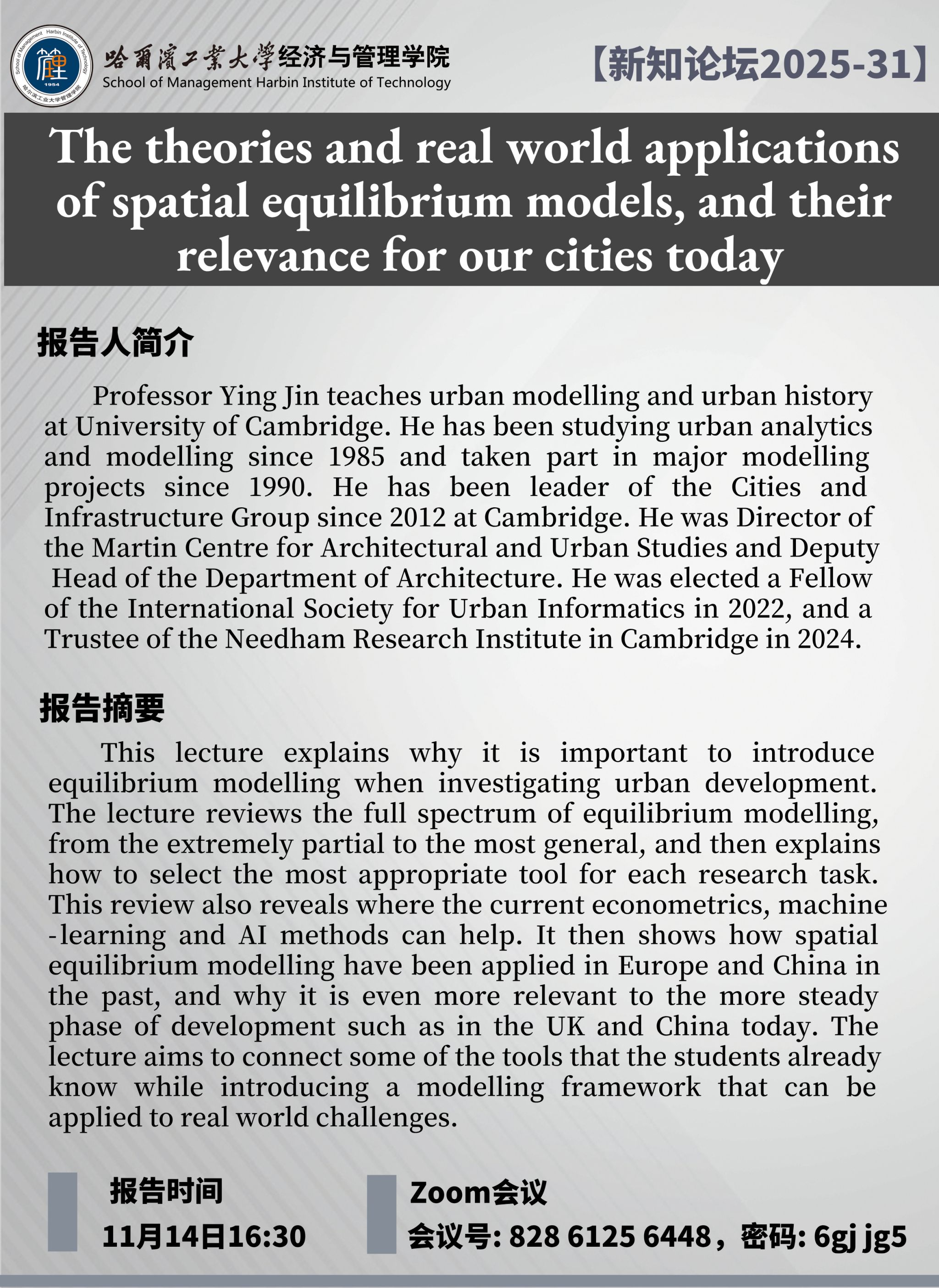 讲座主题:The theories and real world applications of spatial equilibrium models, and their relevance for our cities today