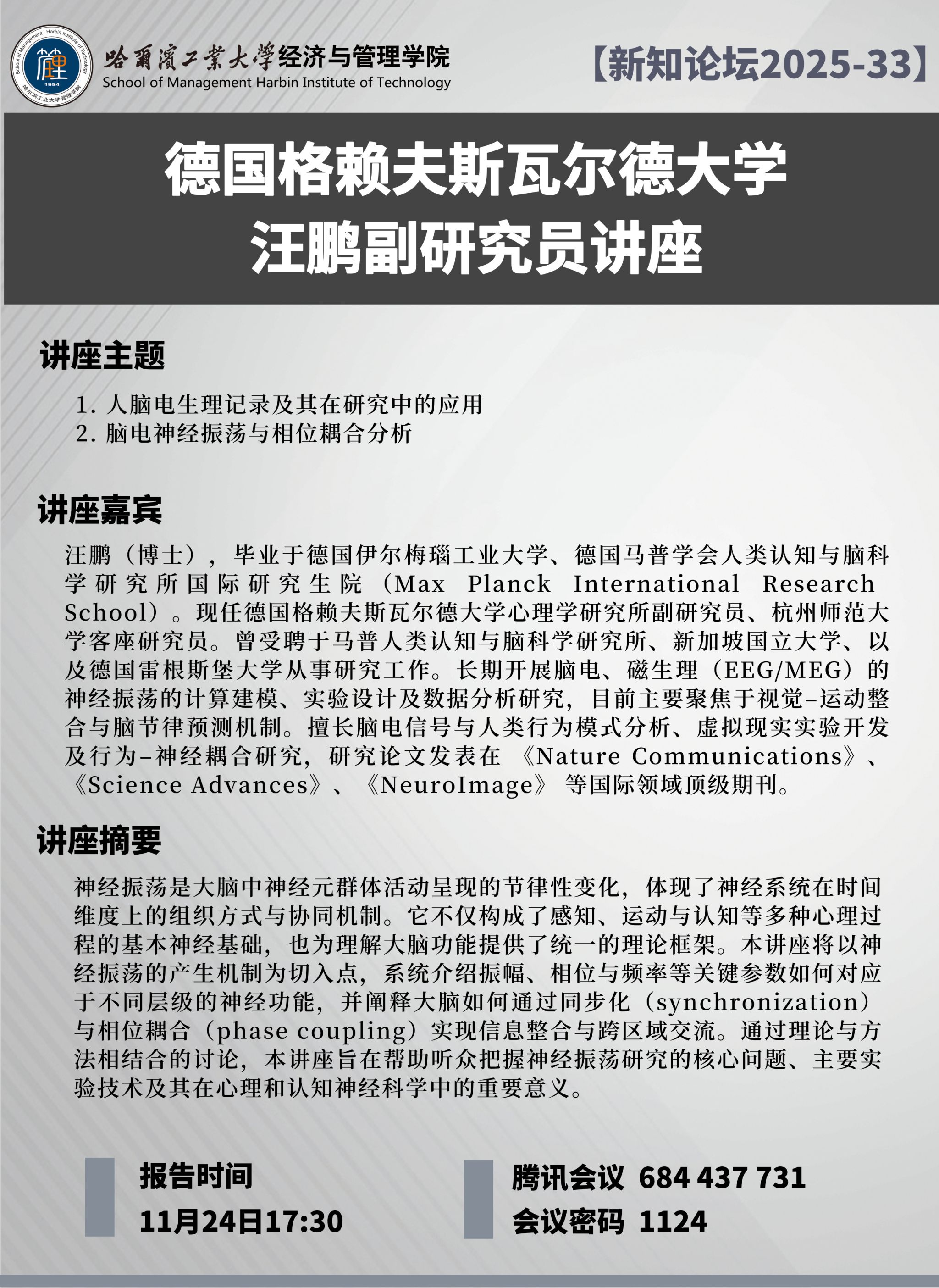讲座地点:腾讯会议(会议号684 437 731,密码1124